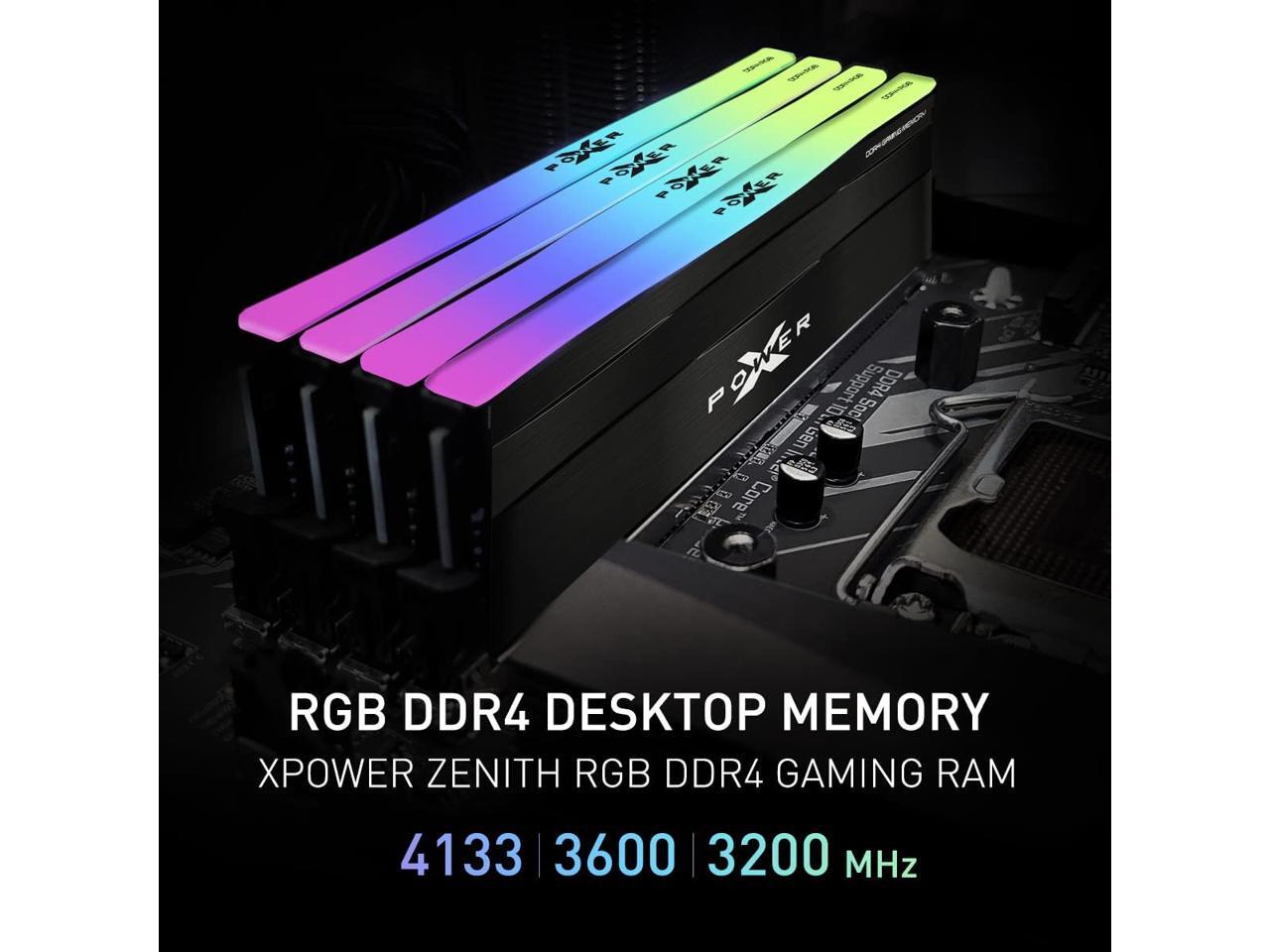 Silicon Power Gaming DDR4 16GB Kit (2 x 8GB) Zenith RGB RAM Gaming 3600MHz (PC4 28800) C18 Desktop Memory Module Ram with Heatsink (SU016GXLZU360BDDSN)
