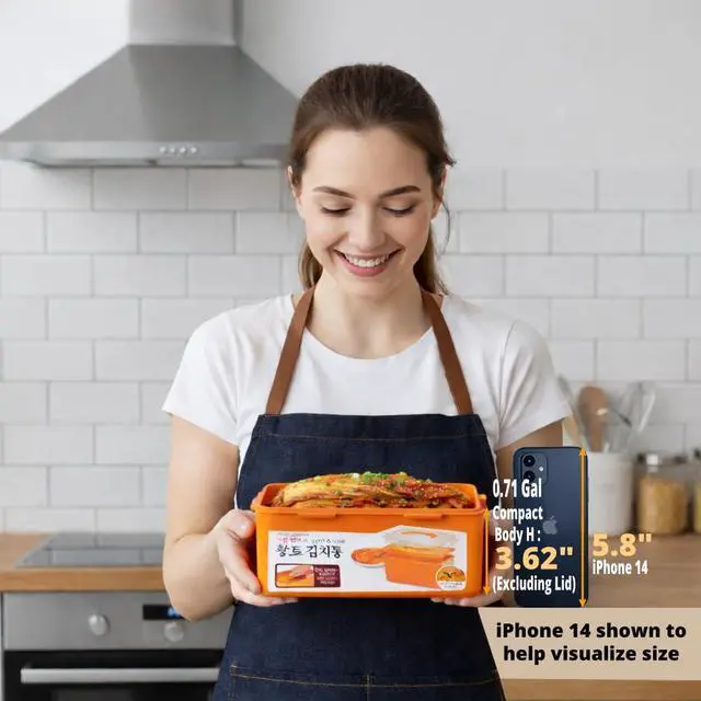 Compact & Space-Saving Design Perfectly sized at 2.7L (2.85 qt), this container is a game-changer for small kitchens and apartments. With a low-profile body height (3.62"), it fits effortlessly into tight refrigerator shelves, mini-fridges, or even RV coolers where space is premium.