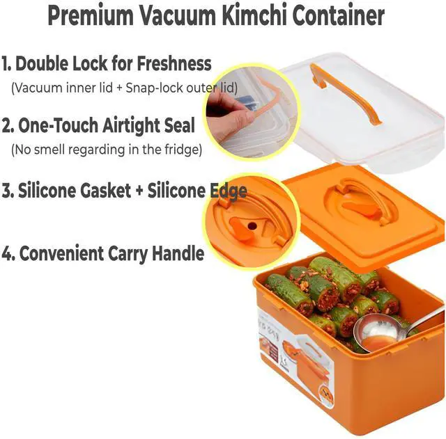 Odor-Proof Vacuum Seal for Freshness Don't let strong smells take over your fridge. Our double-lid system with an Inner Vacuum Lid creates a 100% airtight, anaerobic environment. This specialized seal blocks odors while promoting the growth of beneficial probiotics for your small-batch kimchi and pickles.