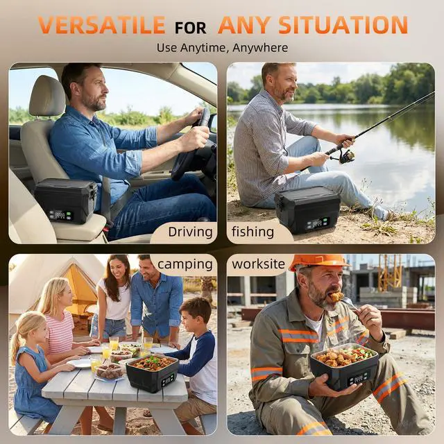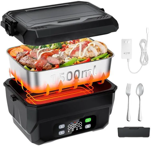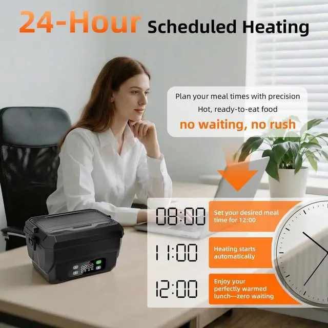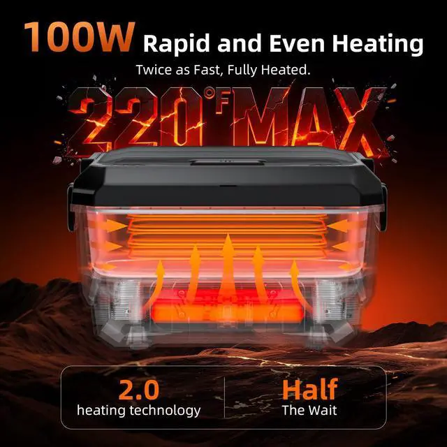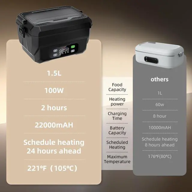 100W Cordless Heated Lunch Box, 45W Fast Charging22000mAh Rechargeable Electric Lunch Box for Adults - 6.5 Cups Portable Food Warmer with 24H Scheduled Heating, for Work, Office, Travel, Outdoor