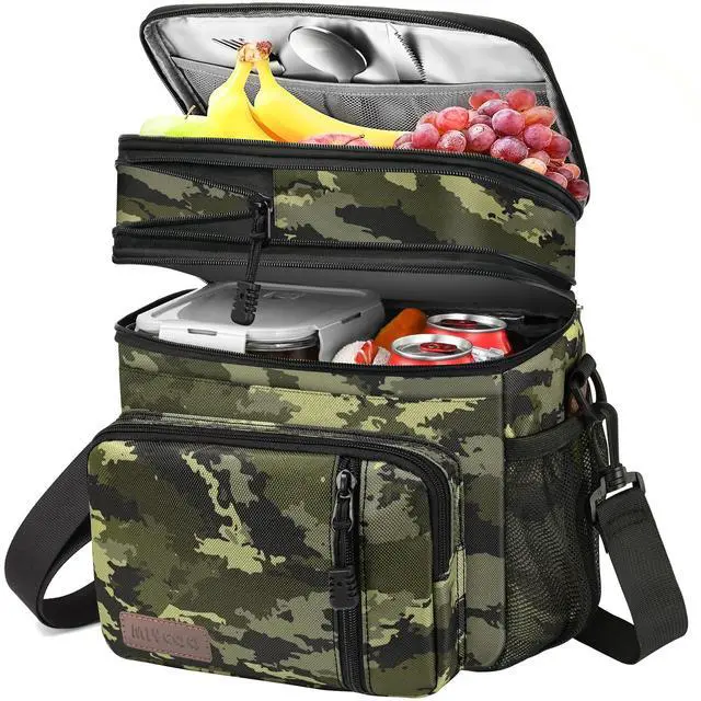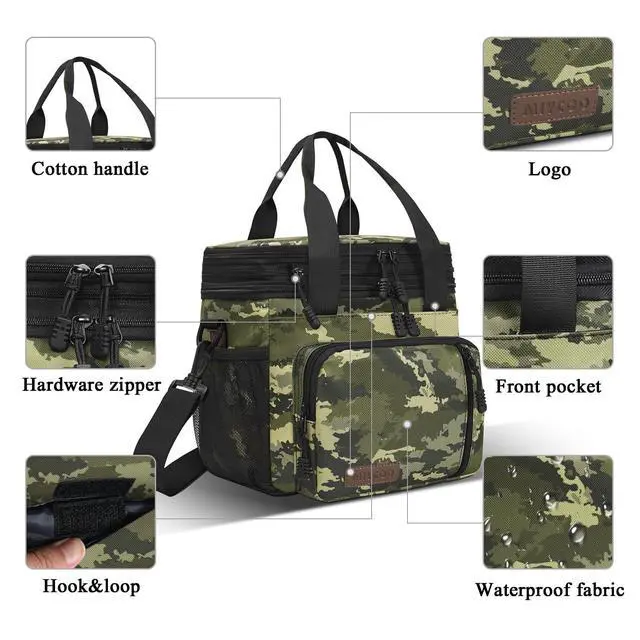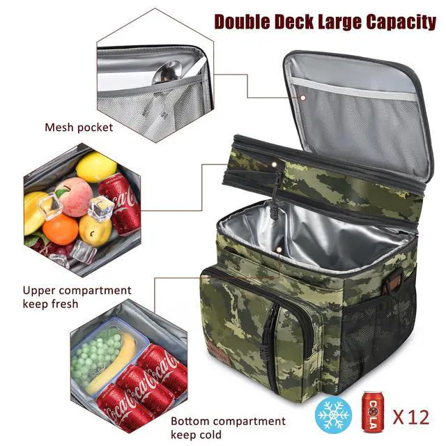 Lunch Bag & Lunch Box for Men Women, Double Deck Leakproof Insulated Soft Large Adult Camping Cooler bag for Work, Beach, Picnic, Travel (Camouflage, 15L)