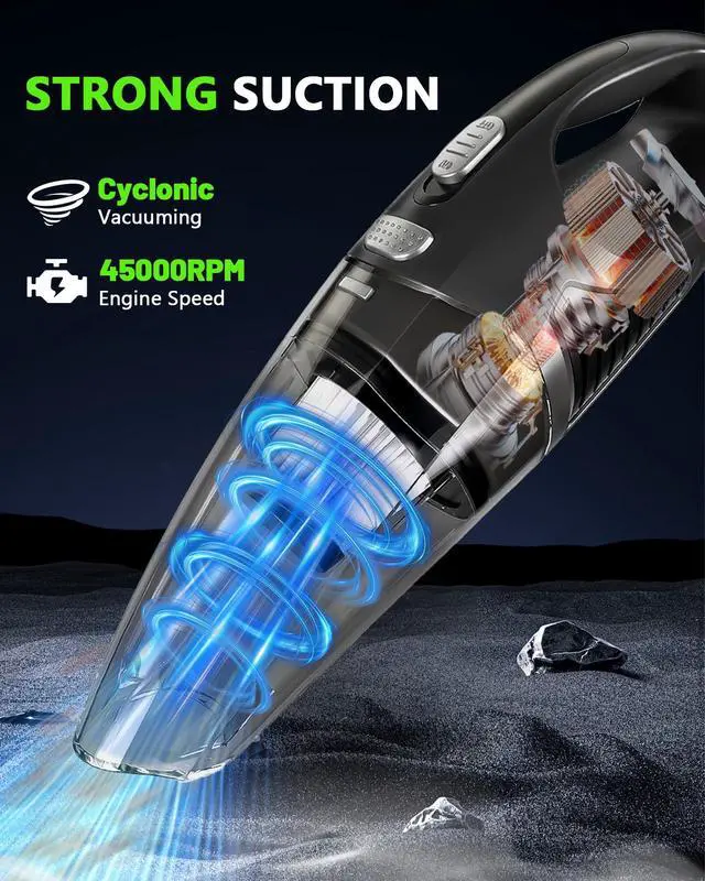 Strong Suction: Compared to other hand held vacuum cordles, it has a stronger suction power! Cordless design frees you from tangled wires, it can effortlessly remove pet hair, dust, and debris. The cyclone effect ensures consistent strong suction and keeps the filter clean for a longer period of time. Small vacuum cleaner is perfect for household, car, and stubborn pet hair cleaning with excellent performance.