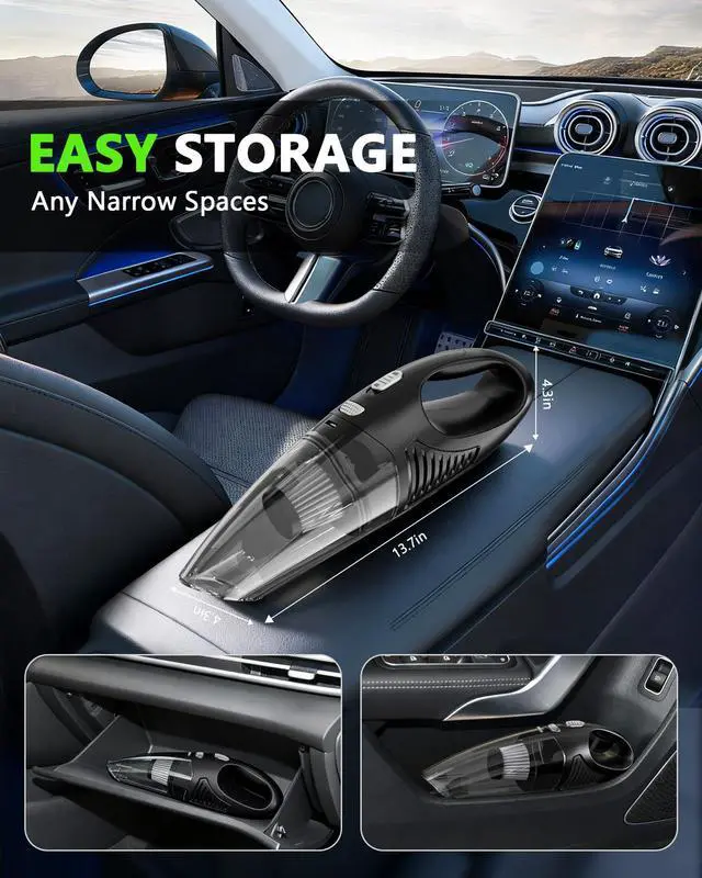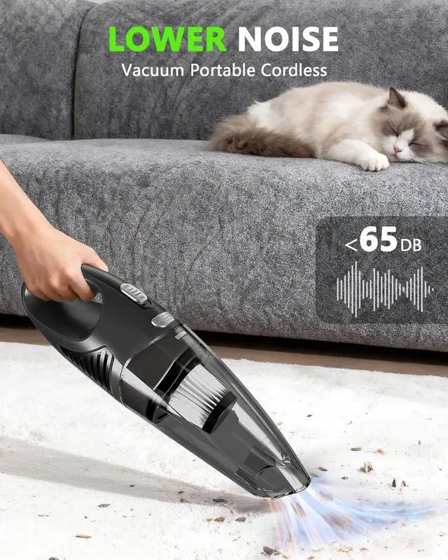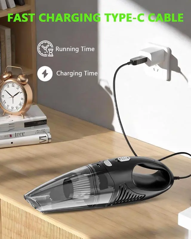 Large Battery Fast Charge: Rechargeable car vacuum is equipped with multiple large capacity batteries and Type-C fast charging, supporting 5V/2A adapters for flexible charging at home, in the car, or on the go. After being fully charged for 3.5 hours, the battery life can be extended by about 20 minutes. Compared to others, our mini vacuum has doubled its lifespan. The noise during operation is only as low as 70dB, making cleaning quieter and more comfortable.