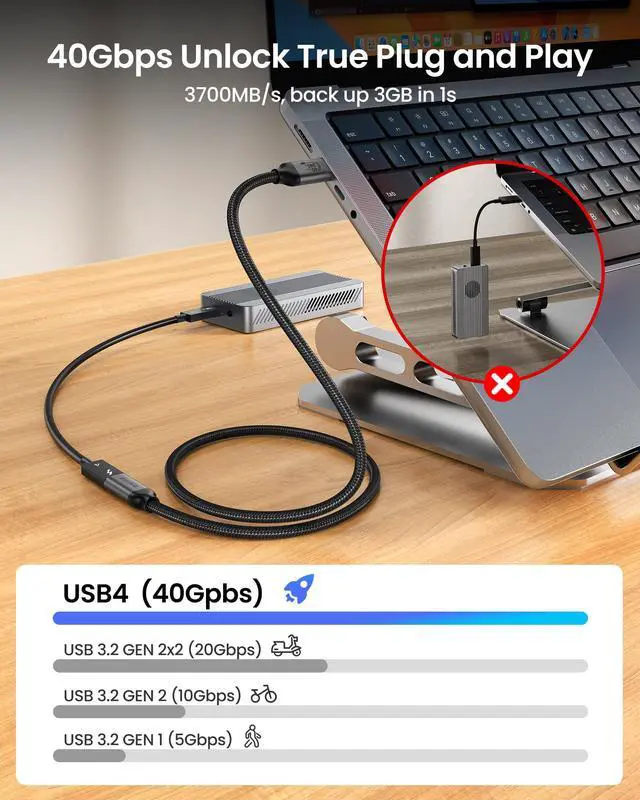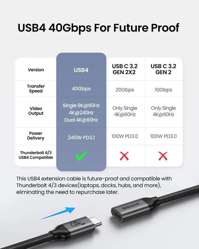 ![Alt view image 5 of 7 - 40Gbps USB 4 Extension Cable for Thunderbolt 4, [240W Charging, 8K 60Hz] USB C Extender 3.3ft, 4K@240Hz Type C Male to Female Adapter Compatible for USBC Hub, iPhone 17/16, MacBook, iPad](https://c1.neweggimages.com/productimage/nb640/C5JMD2603060EG10709.jpg)