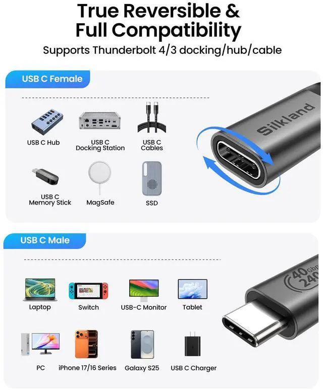 ![Main image of 40Gbps USB 4 Extension Cable for Thunderbolt 4, [240W Charging, 8K 60Hz] USB C Extender 3.3ft, 4K@240Hz Type C Male to Female Adapter Compatible for USBC Hub, iPhone 17/16, MacBook, iPad](https://c1.neweggimages.com/productimage/nb640/C5JMD2603060EFXGY0A.jpg)