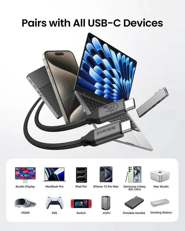 ![Alt view image 5 of 7 - USB 4 Cable for Thunderbolt 4 Cable 3.3FT, 40Gbps Data Sync, 8K/5K USB C Monitor [USB-IF Certified] Netbraid-48 240W USB C Thunderbolt, Compatible for SSD, MacBook, iPhone 17/16, Docking](https://c1.neweggimages.com/productimage/nb640/C697D2604180J4DOKC4.jpg)