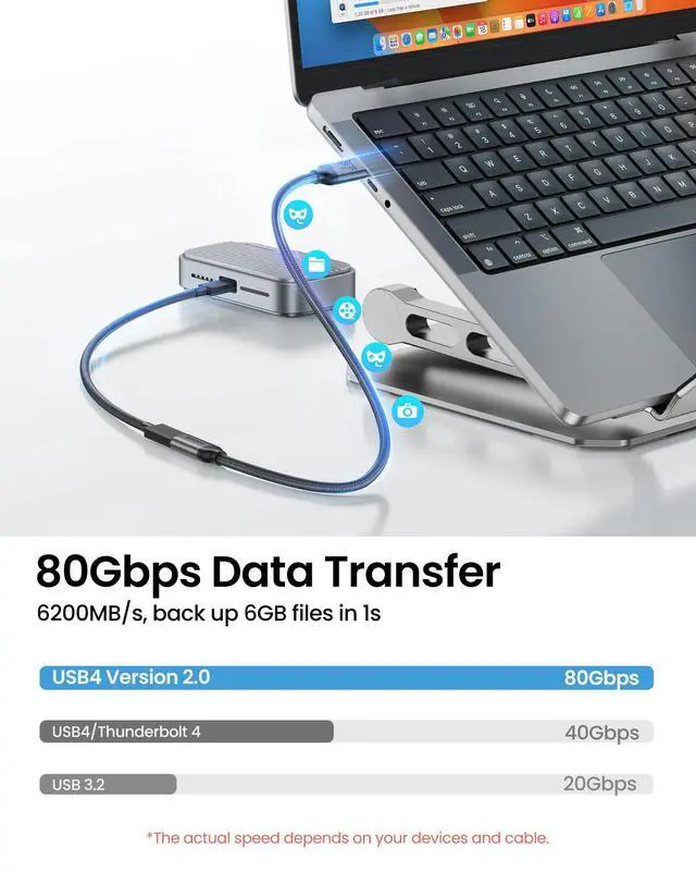 ![Alt view image 5 of 7 - 80Gbps USB 4 Extension Cable for Thunderbolt 5/4, [240W Charging, 8K 60Hz] USB C Extender 6.6ft, 4K@540Hz Type C Male to Female Adapter Compatible for USBC Hub, iPhone 17/16, MacBook, iPad](https://c1.neweggimages.com/productimage/nb640/C4WXD2602090EBPREA2.jpg)