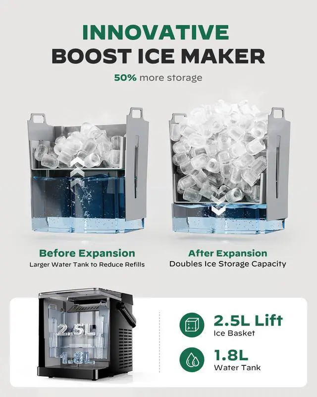 Silonn Boost Ice Maker | More Ice, Less Emptying with 2.5L Basket