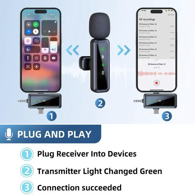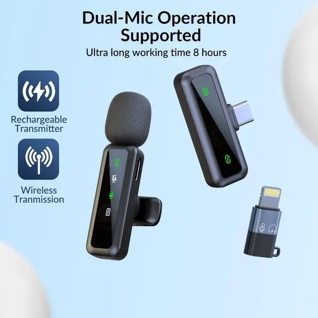 | Included Components | Mini Microphone x 2, Type-C+Lightning Reciver x 1, USB-C Charging Cable x 1, Windproof Covers x 2 |