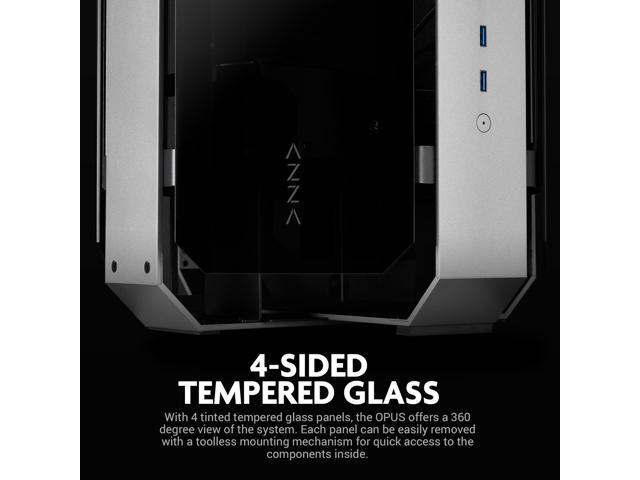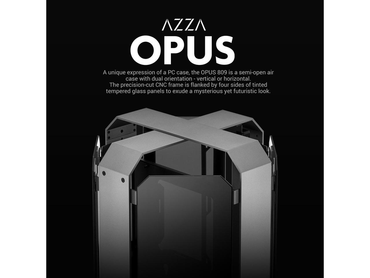 AZZA Opus 809 / Gaming / CNC ATX Case / 4-Side Tempered Glass / Silver / Dual Orientation - CNC-Milled Aluminum / PCIE 4.0 included / Type-C Port