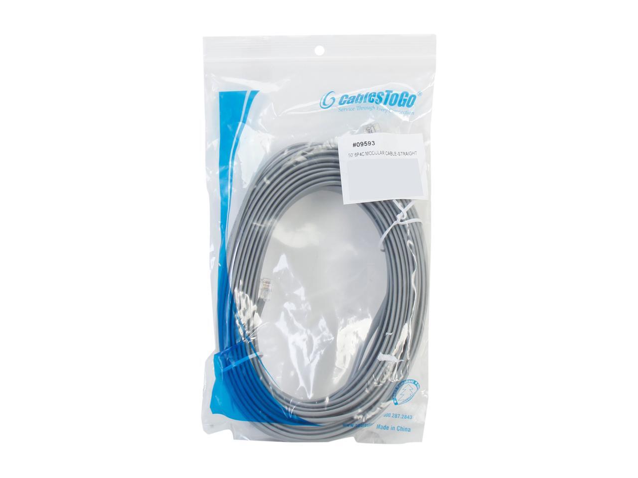 C2G 09593 RJ11 6P4C Straight Modular Cable, Silver (50 Feet, 15.24 Meters)