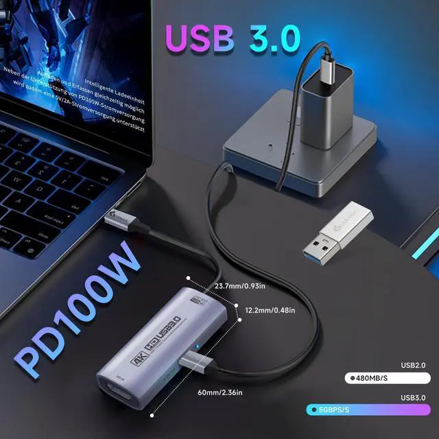When using an adapter, if the device is recognized as USB 2.0, try using the other side with the USB-C port. Simply flip the capture card and reconnect it to be recognized as USB 3.0