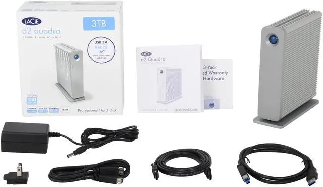 With the new USB 3.0 5Gbps interface and up to 5TB, the LaCie d2 Quadra Hard Disk is the ideal tool for creative professionals who need both fast data and large storage capacity. It features 7200RPM drives with a minimum of 32MB cache for the best performance and seek times, so it can handle the most resource-intensive applications. Best of all, it can achieve speeds up to 130Mbps in USB 3.0.