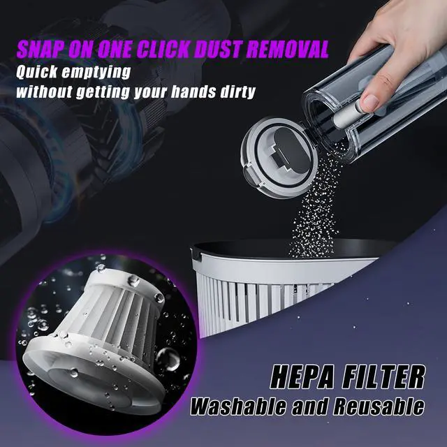 HEPA filter can be washed directly with water for easy cleaning.