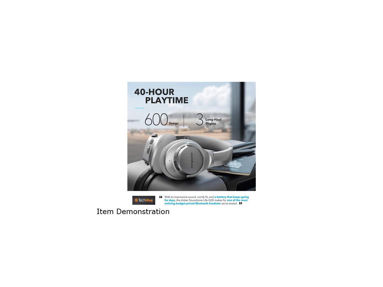Anker Soundcore Life Q20 Hybrid Active Noise Cancelling Headphones, Wireless Over Ear Bluetooth Headphones with 40H Playtime, Hi-Res Audio, Deep Bass, Memory Foam Ear Cups and Headband for Travel, Work