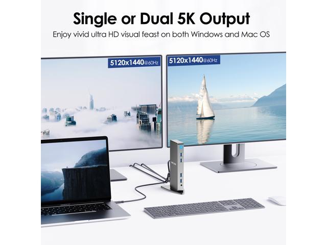 - Supports resolutions up to Ultra 5K (5120 x 2880@60Hz) single display when using dual DisplayPort ports with 5K monitor/ Dual 4K HDMI / 4K HDMI +4K DisplayPort (4096 x 2160) @60Hz. (Note: For Display port make sure your monitor supports DP 1.2 and monitor settings are configured to use DP 1.2). Docking station is suggested for use with web and productivity software; not recommended for gaming.