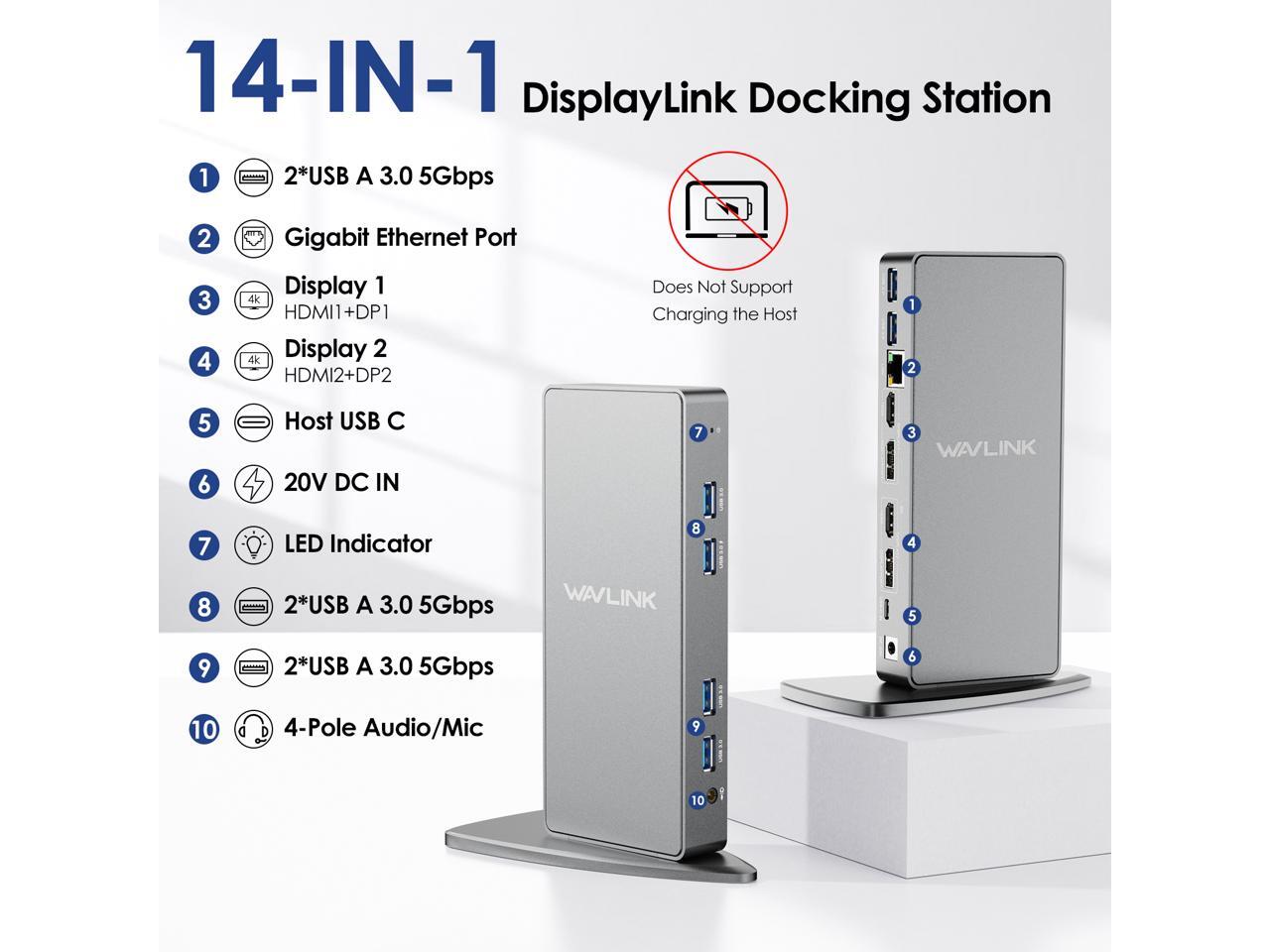 WAVLINK USB C Dual 5K/4K@60Hz Laptop Docking Station With 2 X HDMI, 2X DisplayPort, Gigabit Ethernet, 6 x USB 3.0, Audio, Mic, for Thunderbolt 4/3, USB-C/A Windows, MacOS, Chrome, Ubuntu 20.04,22.0