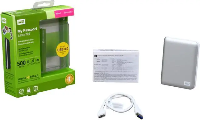 USB 3.0 and USB 2.0 CompatibilityWestern Digital’s My Passport Essential features universal compatibility with widely-used USB 2.0 and next-generation SuperSpeed USB 3.0. When connected to a SuperSpeed USB 3.0 port, the drive lets you access and save files up to 3 times faster than USB 2.0.