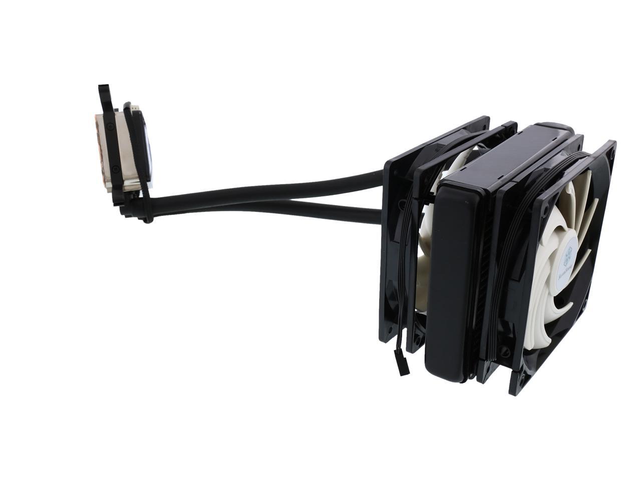 | Features | Easy installation with aluminum clips and steel back-plate Maintenance free, no refill required Dual auto adjustable 120mm PWM fans included Durable alloy water-block for improved reliability Patented brazing fins radiator increase cooling efficiency by 40% Socket LGA775/1150/1155/1156/1366/2011/AM2/AM3/FM1/FM2 |