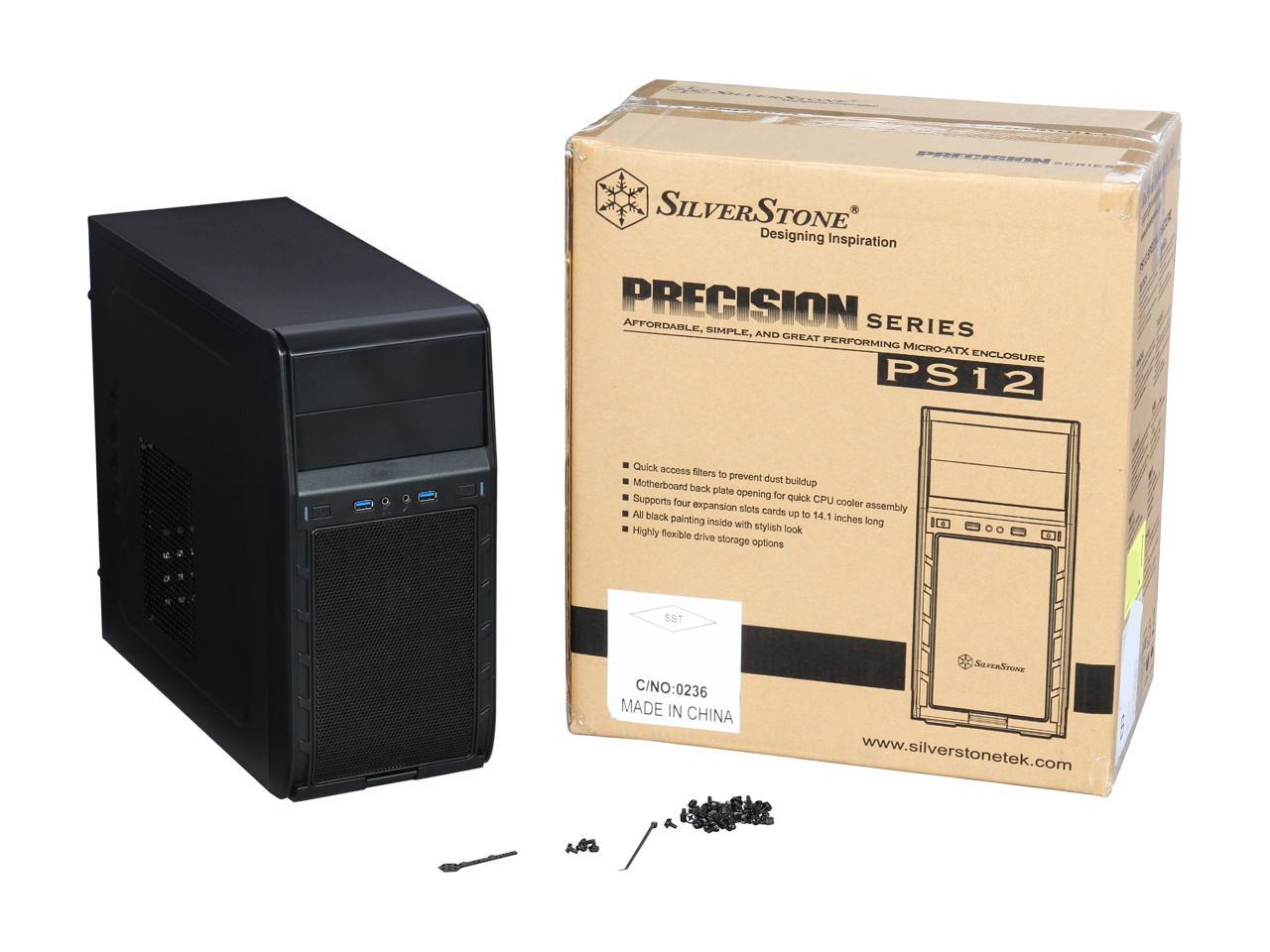 SilverStone Precision Series CS-PS12B Black High-strength plastic and meshed front panel Micro ATX / Mini-ITX Computer Case Compatible with 1 x optional standard PS2(ATX) Power Supply
