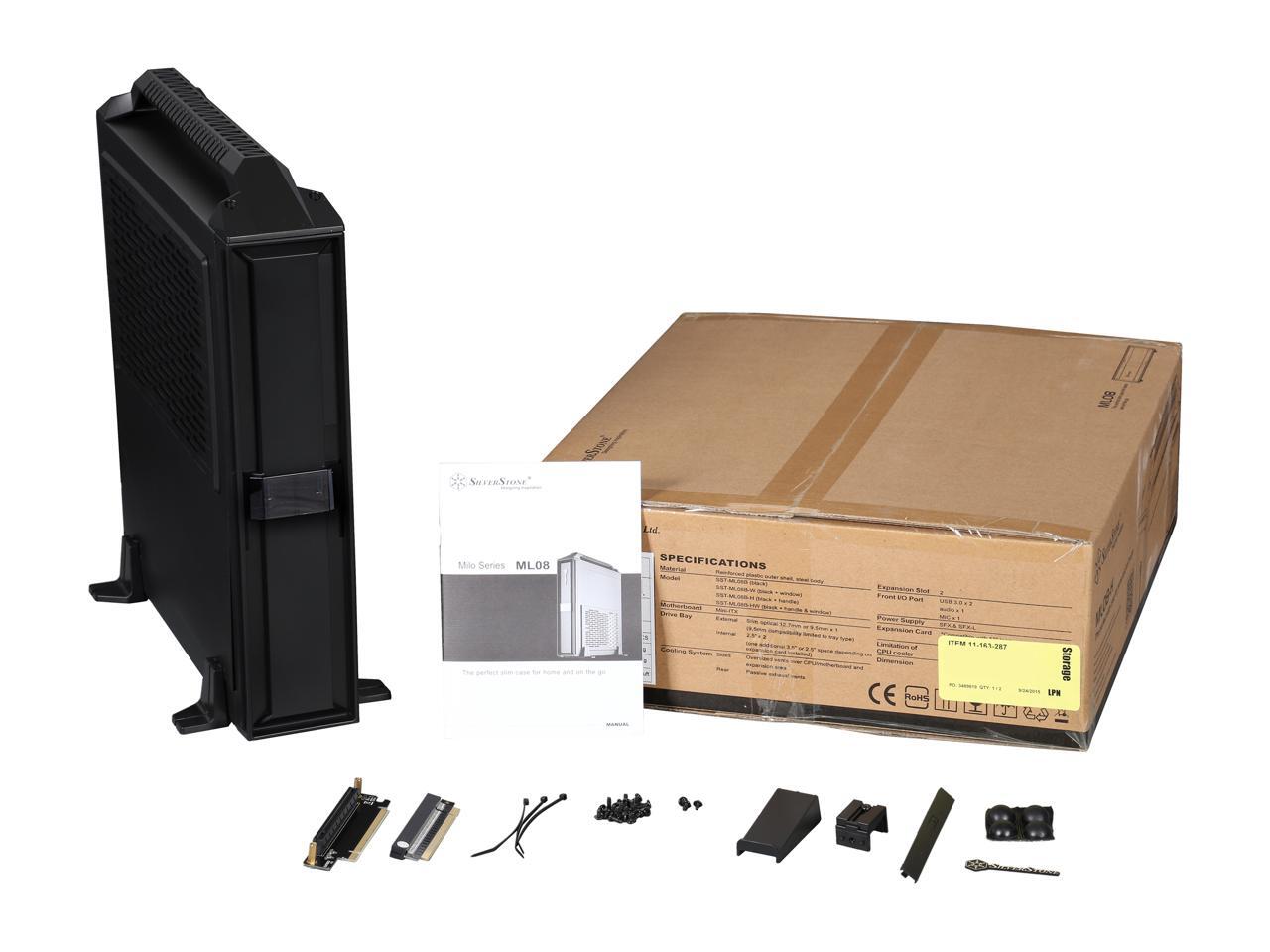 SilverStone Milo Series ML08B-H Black Reinforced plastic outer shell, steel body Mini-ITX Computer Case Compatible with SFX & SFX-L Power Supply