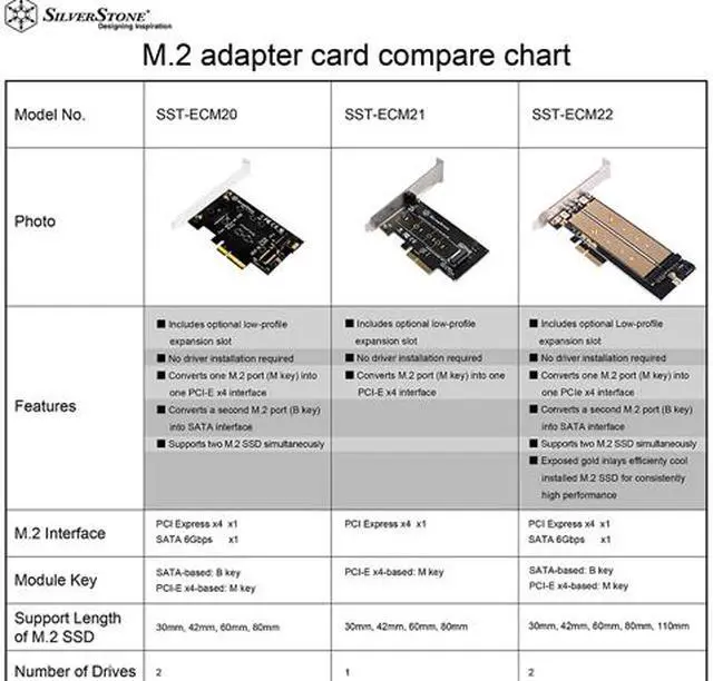 | Series | SilverStone Technology M2 to M Key PCI-E X4 Card ECM21 |