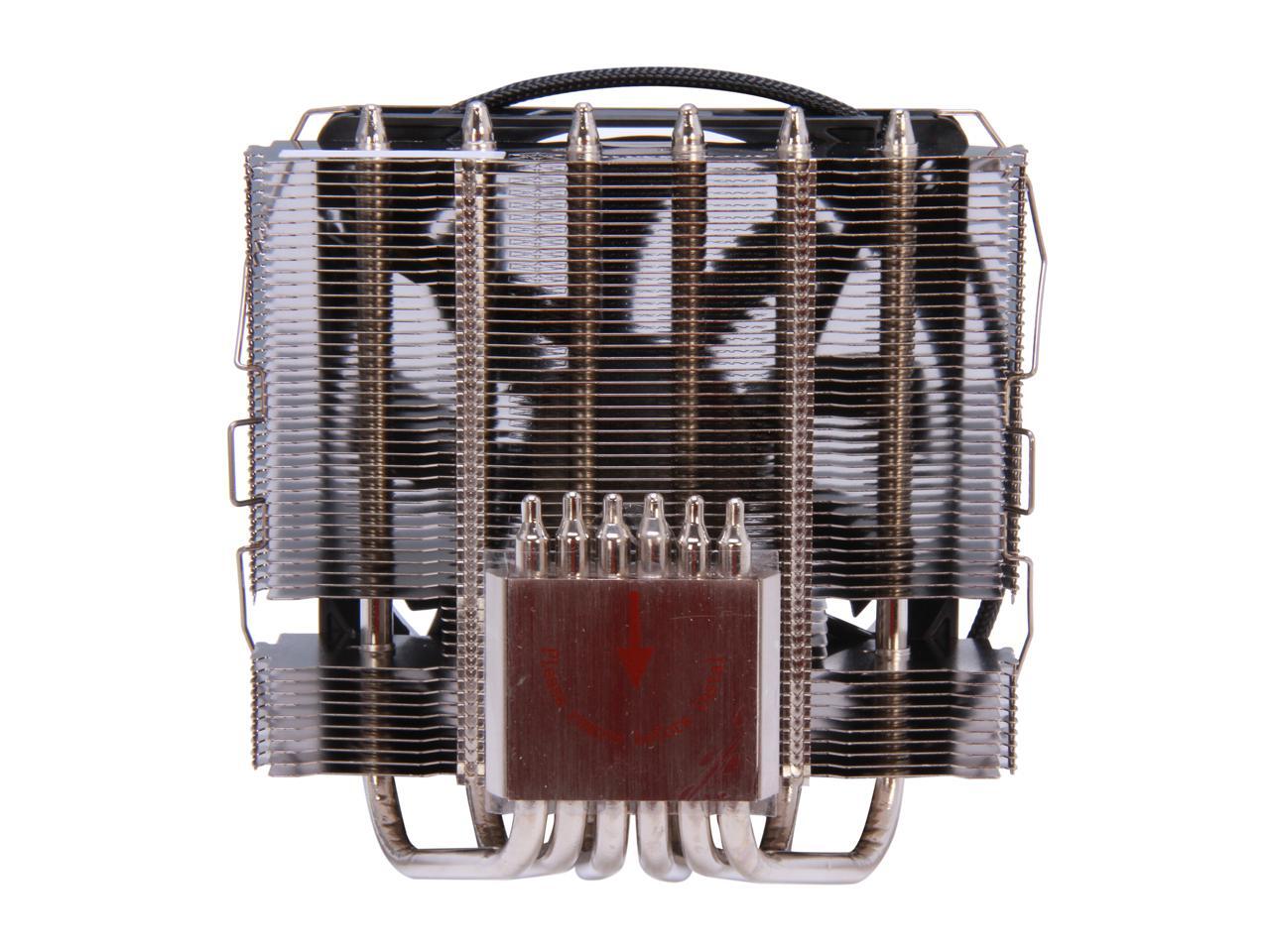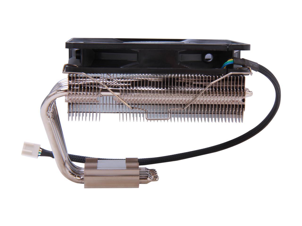 The heat sink is composed of heat-pipes, copper base, and aluminum fins. The six heat-pipes pass through the copper base and the aluminum fins to efficiently conduct heat away.