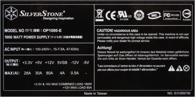 Highly EfficientDelivering more than 80% efficiency, the Silverstone OP1000-E power supply saves energy and may even reduce your electric bill!