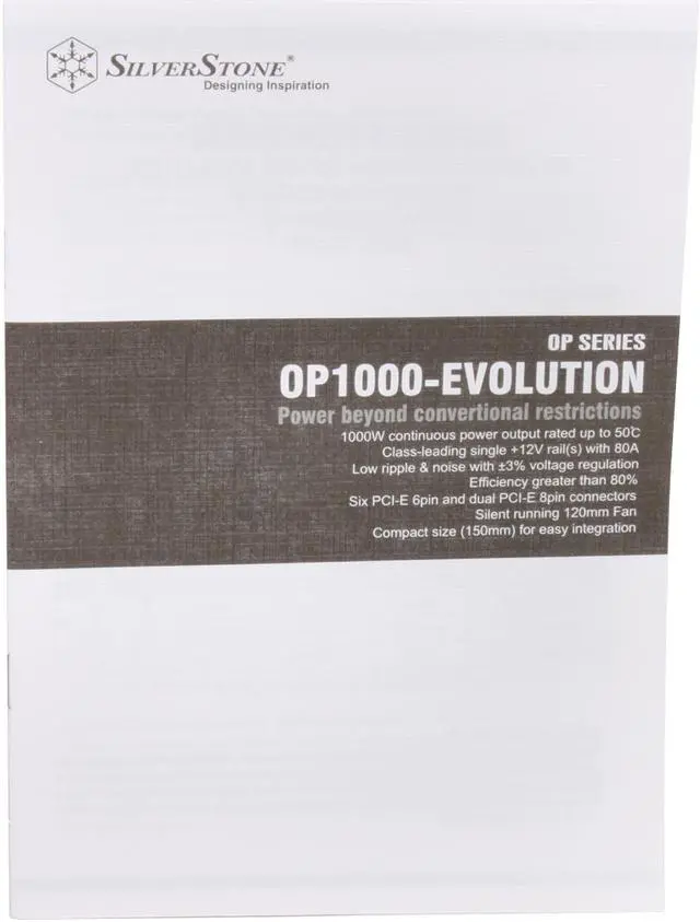 Silverstone's Olympia series PSUs are designed to deliver maximum power with stark simplicity. Instead of bumping up the cost and complexity by using multiple +12V rails the OP1000-E has 1 extremely robust 80A rail. The Active PFC and >80% efficiency rating ensure no power is wasted.