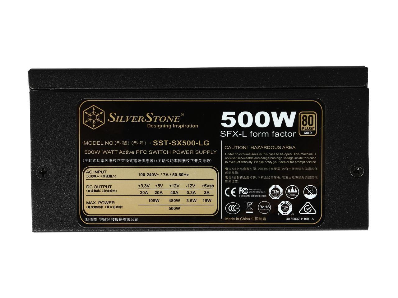 SILVERSTONE SX500-LG 500W SFX-L 80 PLUS GOLD Certified Full Modular Active PFC Power Supply, Silent running 120mm fan with 18dBA minimum (SX500-LG V2.0)