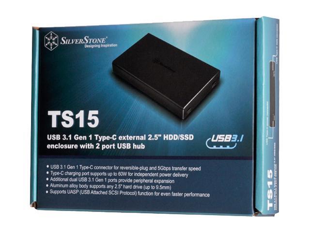 SilverStone SST-TS15B Aluminum 2.5" Black SATA I/II/III USB 3.1 External Enclosure