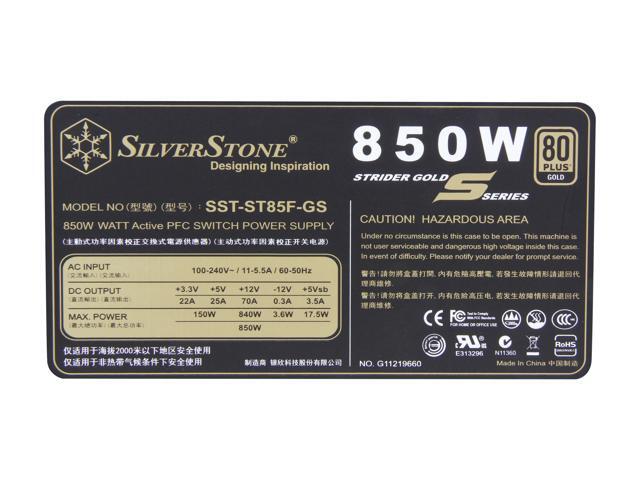 SilverStone Strider Gold S Series ST85F-GS 850 W ATX 80 PLUS GOLD Certified Full Modular Active PFC Power Supply