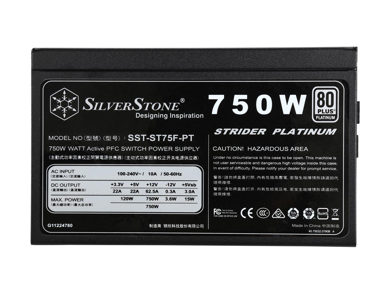 SilverStone Strider Platinum series PS-ST75F-PT 750 W ATX12V / EPS12V 80 PLUS PLATINUM Certified Full Modular Active PFC Power Supply