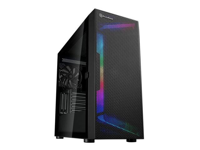 - Perforated full mesh front panel with embedded ARGB lighting strip achieving vibrant aesthetics with completely unobstructed airflow performance