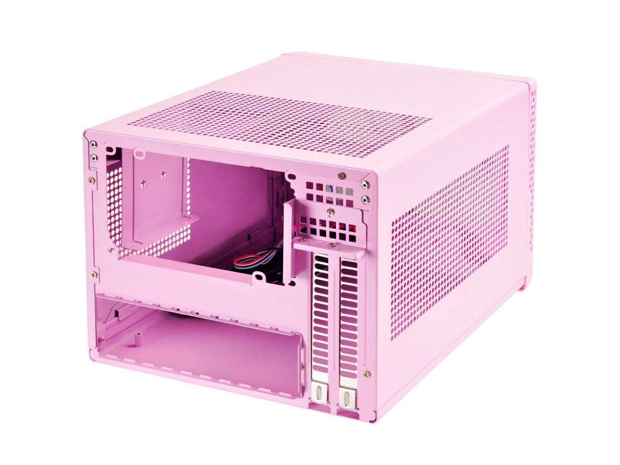 Pink, ABS bezel, steel body, Mini-ITX, 1x3.5" or 2x2.5", 1x2.5", 1x120 or 140 fan/radiator slot, 1xaudio, 1xMIC, 2xUSB3.0, ATX PSU support