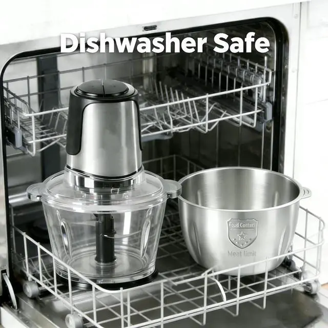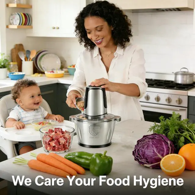 Best Kitchen Helper: Simple Deluxe mini food processor comes with two sets of blades and two 8-cup bowls; A glass bowl for vegetables and a 304 stainless steel bowl for meat grinding (heat-resistant up to 200°C), preventing cross-contamination between raw/cooked foods, differentiating between meat and vegetables, keeping food clean and hygienic, especially if you need to make pureed fruits and vegetables for your baby