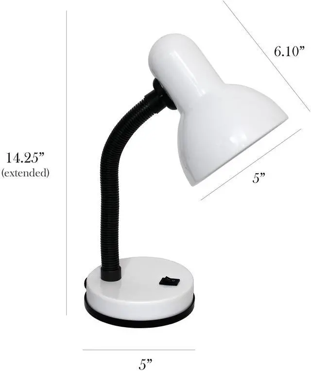 A simple, classic desk lamp built to meet your basic lighting needs. The flexible neck lets you direct light exactly where you need it, while the sturdy base and timeless design make it a perfect fit for any workspace, college dorm, or creative setup.