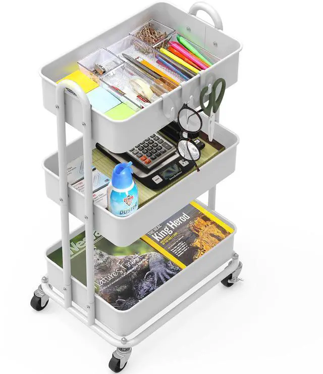 Versatile Utility Carts and Bin Container Organizers for Kitchen, Office, Bathroom and Living Space.