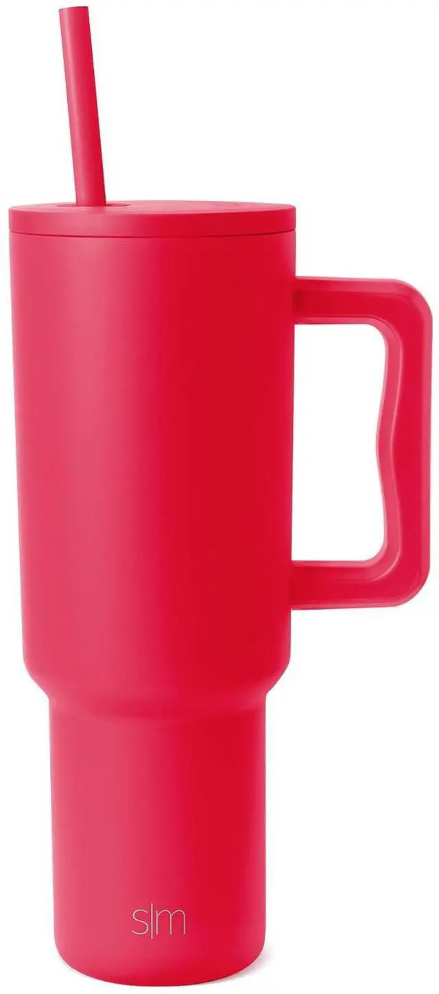 40 oz Trek Tumbler with Handle and Straw Lid | Cup Holder Friendly Insulated Stainless Steel Travel Mug | Ember Red