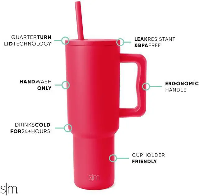 • Leak Resistant Insulated Lid: Two straws included, one color-matched and one clear Tritan plastic straw