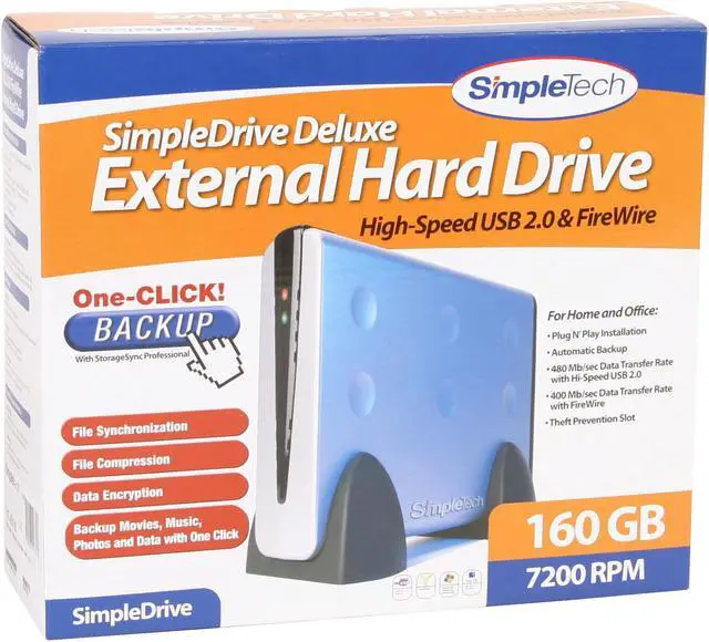 | Package Contents | 160GB External Hard Drive Driver Disk Software Disk 1 x USB Cable 1 x FireWire (IEEE 1394a) Cable Power Adapter Brackets |