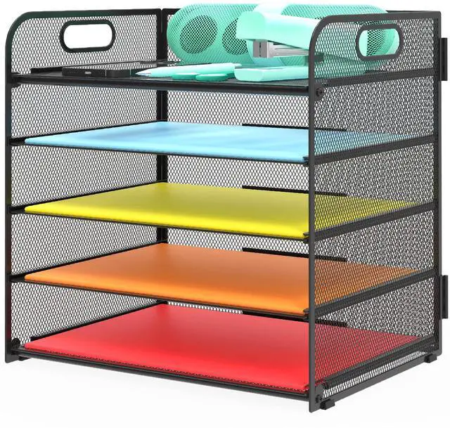 Sturdy design to store any A4or letter size files, documents, folders, papers, stationery, mail, magazines, books and more. A great start to re-organise your current files and endless paperwork, use our desk organizer to increase your efficiency at work.