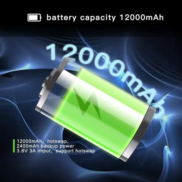 Power and battery: battery total capacity 14400mAh 12000mAh, hot-swap, 2400mAh backup power