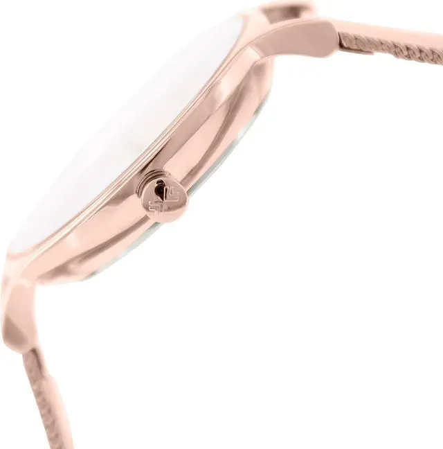 Stay on track during the hustle and bustle of spring with a glittering look featuring crystal accents. The accented shining case paired with the rose gold-tone woven steel band combine for effortlessly elegant design.
