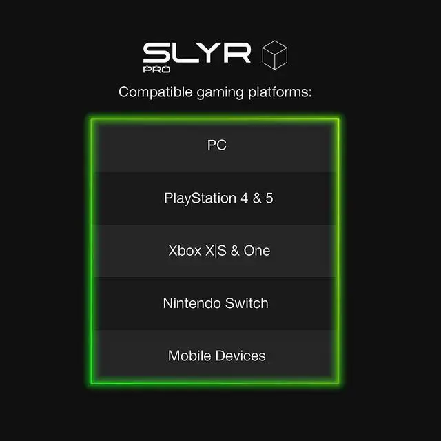 Multi-platform compatibility - The SLYR Pro is a true multiple platform gadget. Connect yours to a PC, Xbox, Playstation, Nintendo Switch, Android, iPhone and more.