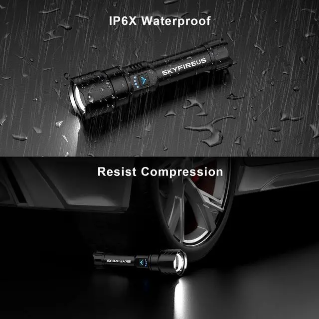 | Special Feature | 5000mAh rechargeable battery,Powerbank,waterproof, Long press to activate the strobe mode,4 models, Super bright rechargeable flashlight with ignition lens can be used for fire or heating outdoor, Switch between spotlight and floodlight by stretch flashlight handle, Turns off with a single click after being on for more than 10 seconds |