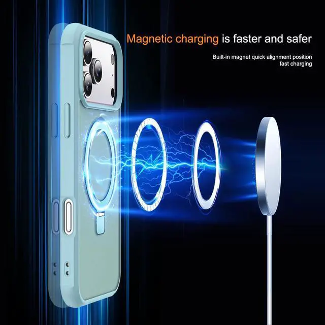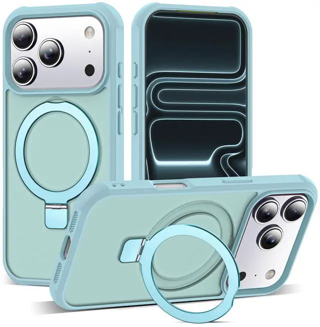 Compatible with iPhone 17 Pro Case with Invisible Magnetic O-Ring Stand Military-Grade Translucent Phone Case for iPhone 17 Pro 6.3" [Compatible with Mag-Safe][Great Grip Feeling], Blue