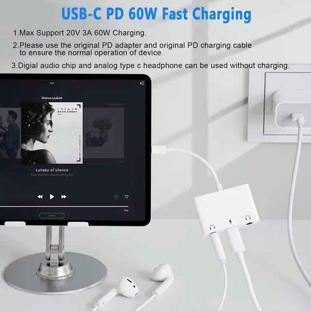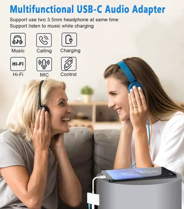 The adapter offers an easy solution to USB C devices that do not have an integrated 3.5mm headphone port, let you can share music and movies with your friend and family member without bothering people around during flight or train trip. And never worry about your phone run out of power while enjoying music or movies. This USB-C audio adapter is a best choice for working during on-line meetings or class.