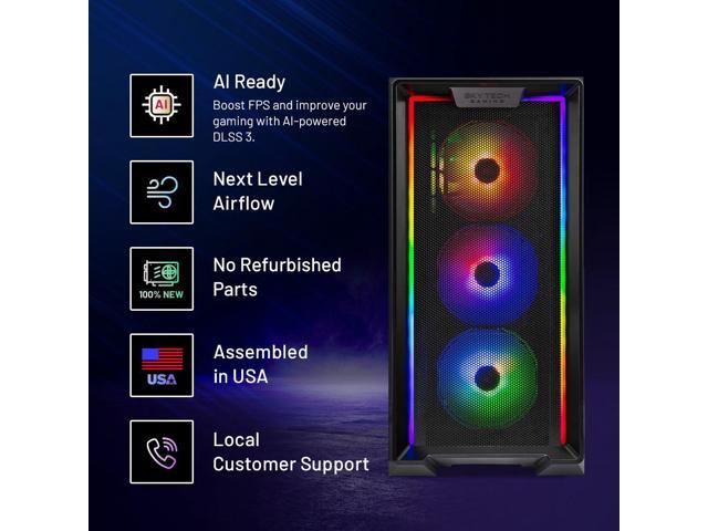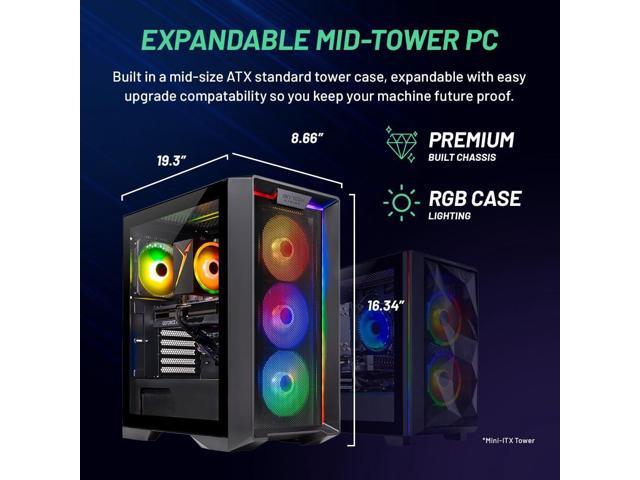 - INTEL Core i5 12400F 2.5GHz (4.4GHz Turbo Boost) CPU Processor | 1TB NVMe M.2 SSD Up to 30x Faster Than Traditional HDD | High-Performance Air Cooler NVIDIA Geforce RTX 4070 12GB GDDR6 Graphics Card (Brand may vary) | 16GB DDR4 RAM 3200 Gaming Memory with Heat Spreader | Windows 11 Home 64-bit 802.11 AC | No Bloatware | Graphic output options include 1 x HDMI, and 1 x Display Port Promised, Additional Ports may vary | USB Ports Including 2.0, 3.0, and 3.2 Gen1 Ports | HD Audio and Mic | Free Gaming Keyboard and Mouse High-Performance Air Cooler: Maximum Airflow & ARGB Fans | Skytech Nebula Black Edition with Front Mesh | 1 Year Warranty on Parts and Labor | Free Technical Support | Assembled in the USA