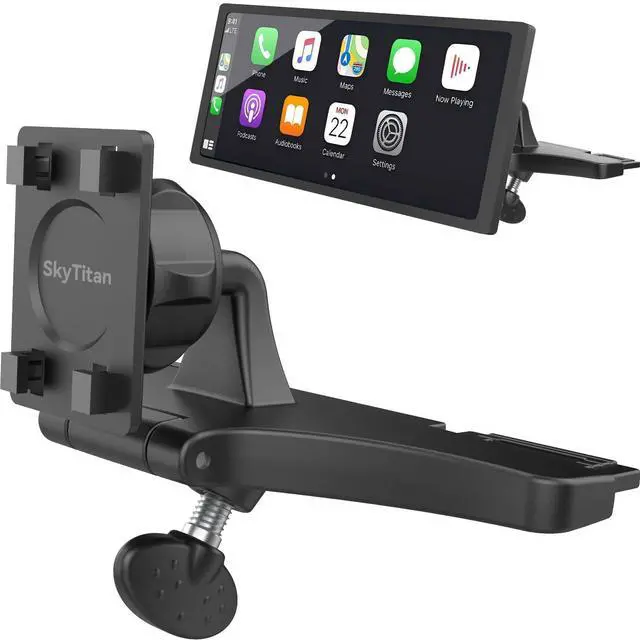 Upgraded CD Player Mount for CarPlay Screens: SkyTitan CD slot car mount features a sturdy, anti-slip base that securely holds your CarPlay screen in place, eliminating wobbles for a distraction-free drive. Its sleek, low-profile design blends seamlessly with most car interiors, offering a cleaner alternative to bulky dash or suction cup mounts. The perfect stable, hassle-free mounting solution for your in-car display monitors